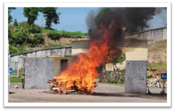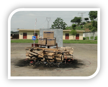 在试样周围的三面4米处竖立验证屏,点燃燃料,观察记录爆炸迹象、迸射物及热效应。