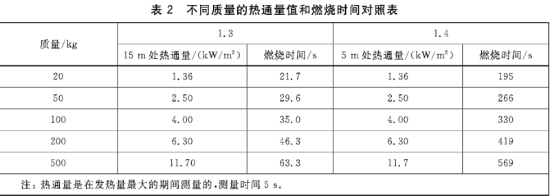 如果没有发生需要把产品划入1.1项或1.2项的情况,但出现一个火球或火舌伸到任何验证屏之外、迸射出来的燃烧物被抛射到距离包装件边缘15米以外、燃烧时间小于表2所示1.3列的时间、喷射火焰的热通量与燃烧火焰的热通量之差超过表2所示1.3列的热通量值,产品即被划入1.3项。
