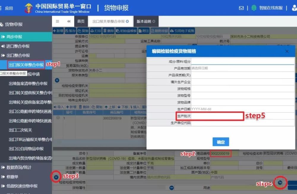 注意:根据海关总署业务部门要求,出口报关单申报时,针对商品编号为3002200011或3002200019的新冠疫苗商品,生产批次字段不可为空。