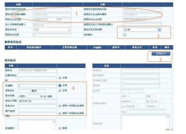 ★ 在报关前,生成电子报关委托书/委托协议 ★ 填写委托协议相关内容: