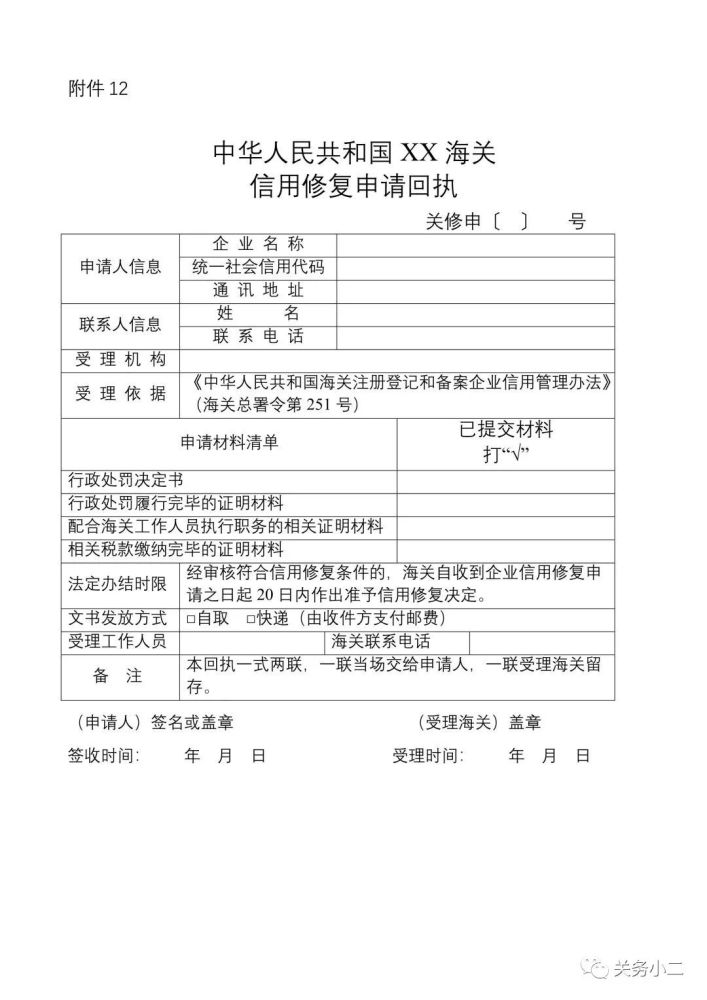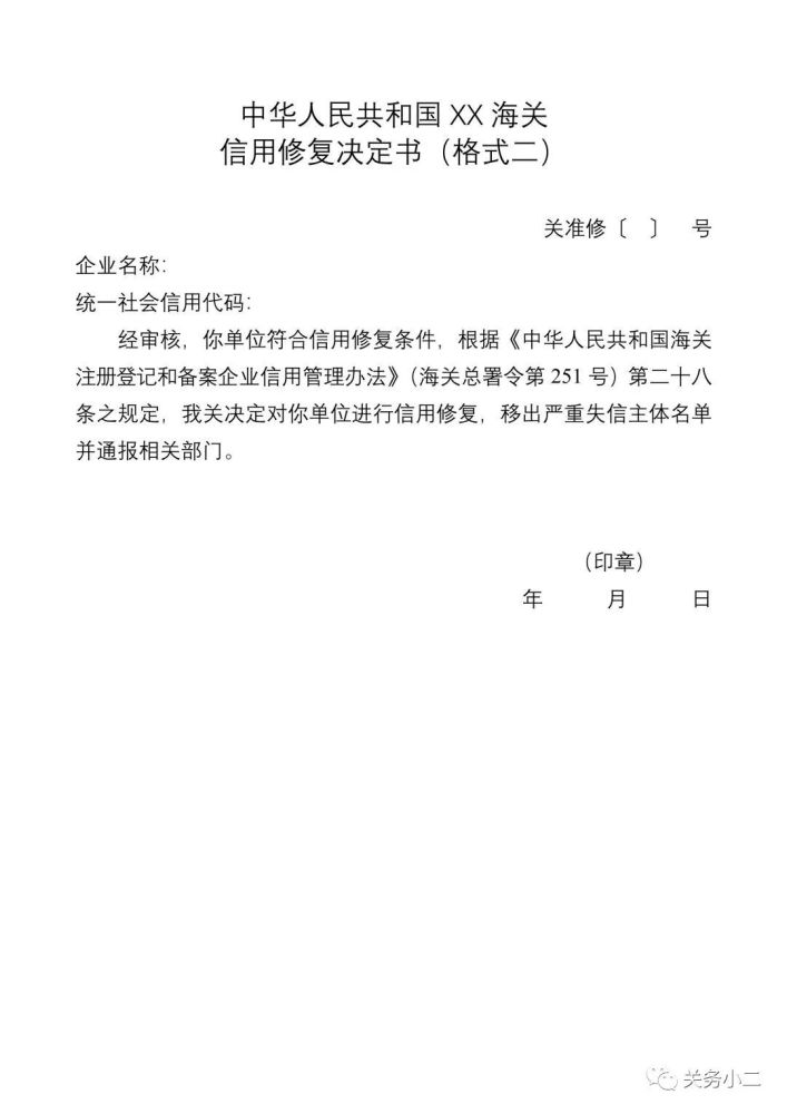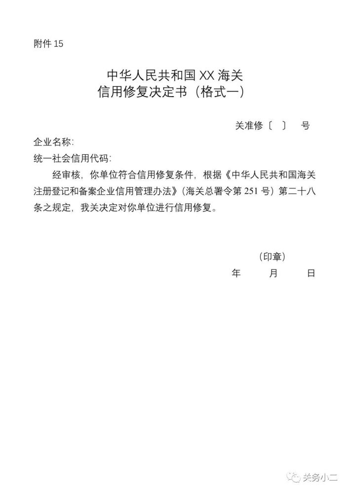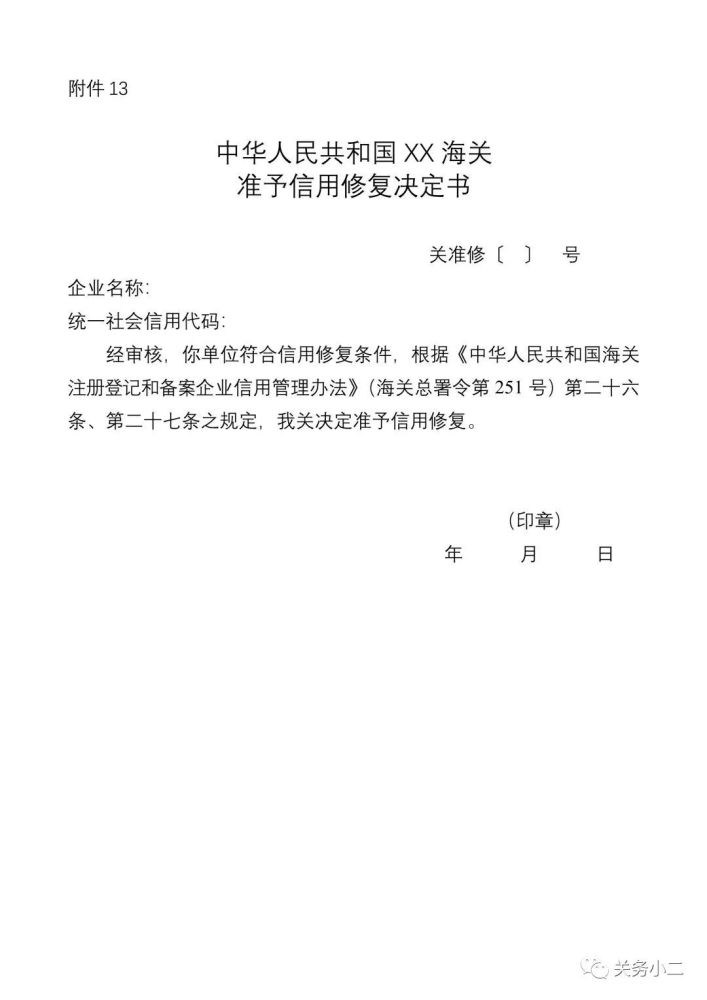 附件13:中华人民共和国XX海关准予信用修复决定书