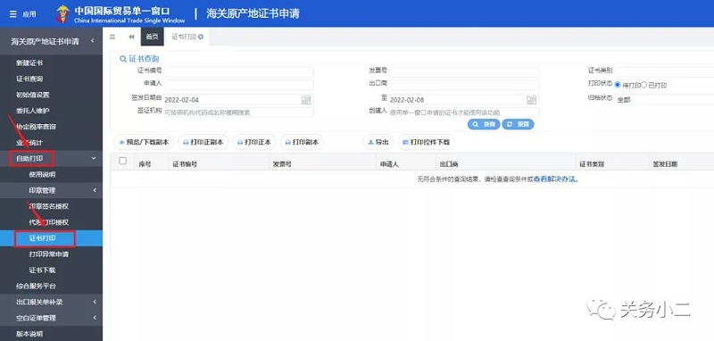 单一窗口海关原产地证办理及自主打印入口: https://swapp.singlewindow.cn/deskserver/sw/deskIndex?menu_id=coo