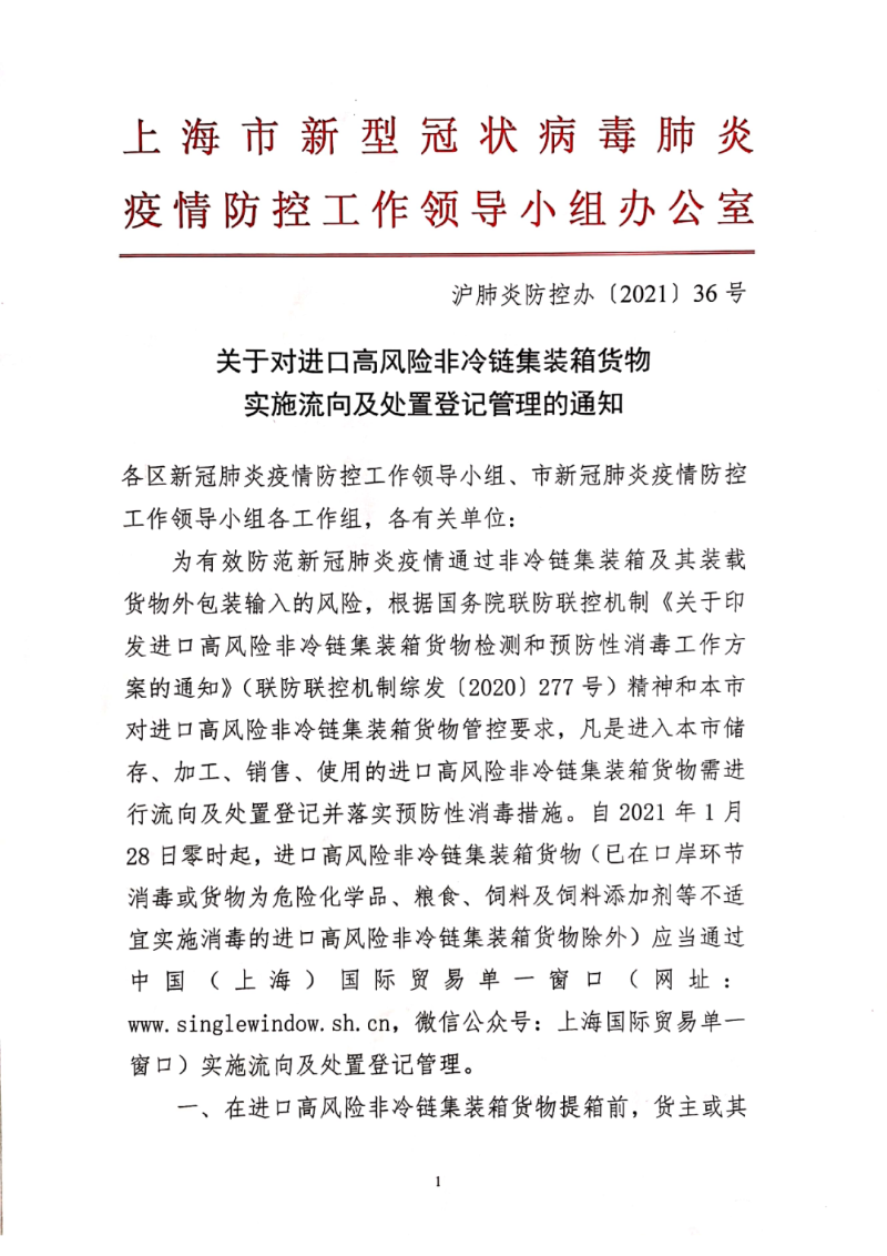 关于对进口高风险非冷链集装箱货物实施流向及处置登记管理的通知