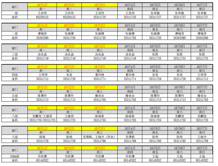 加班表,有要连续做四天的小伙伴,多数都是两到三天的。 还有记得节中申报都是上午半天哦~
