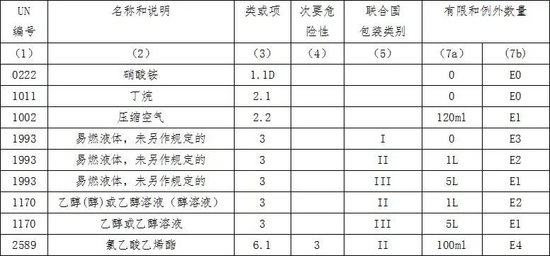 2.每个UN编号对应的有限数量(7a)一栏都有一个具体的数值和单位,“有限数量运输”的单一内包装或物品所盛装的危险货物数量 不可超过此上限 。