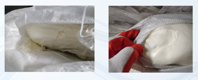 出口亚硝酸钠包装实施使用鉴定时,发现部分货物内包装破损。亚硝酸钠是第5.1+6.1类危险货物。货物内包装破损原因为亚硝酸钠在灌装时温热状态下呈粉末状,灌装后降温板结变硬,在堆垛后造成包装内袋破裂。