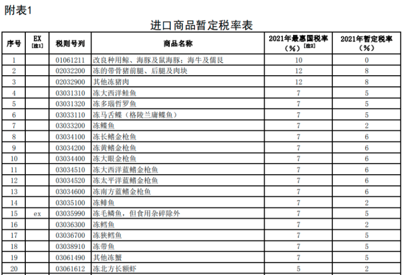 1.自2021年1月1日起对883项商品(不含关税配额商品)实施进口暂定税率;自2021年7月1日起,取消9项信息技术产品进口暂定税率(附表1)。