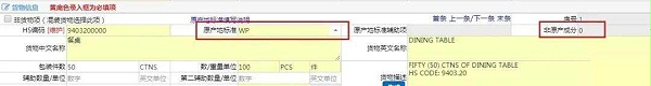 当原产地标准申报为“P”或“WO”或“WP”或“PE”时,货物的非原产成分应申报为“0”;