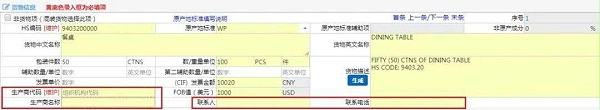 0319--货物信息中的生产商名称、联系人请用中文填写。