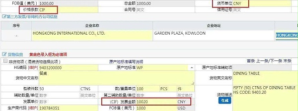 1. 发票信息应根据清关发票中标注的价格条款,货币单位,在申报页面的价格条款和货币单位栏目中以英文填写。但中国-巴基斯坦、中国-新加坡和中国-东盟自贸协定证书的价格条款应填写为FOB(货币单位不限)。在申报每项货物的发票金额时,应根据所选择的价格条款和货币单位,填报相应的金额。
