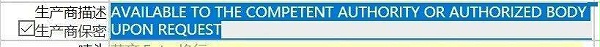 0225--生产商保密应填“AVAILABLE TO THE COMPETENT AUTHORITY OR AUTHORISED BODY UPON REQUEST”。